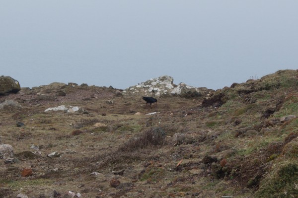 We also saw a pair of Choughs at Cot Valley, and we saw three (a pair plus one?), on the cliffs above Porth Chapel Bay – our favourite beach. What a thrill! I only have my mobi camera but I took one very fuzzy photo of a Chough on the cliff; it could be any corvid but I KNOW it was a Chough.