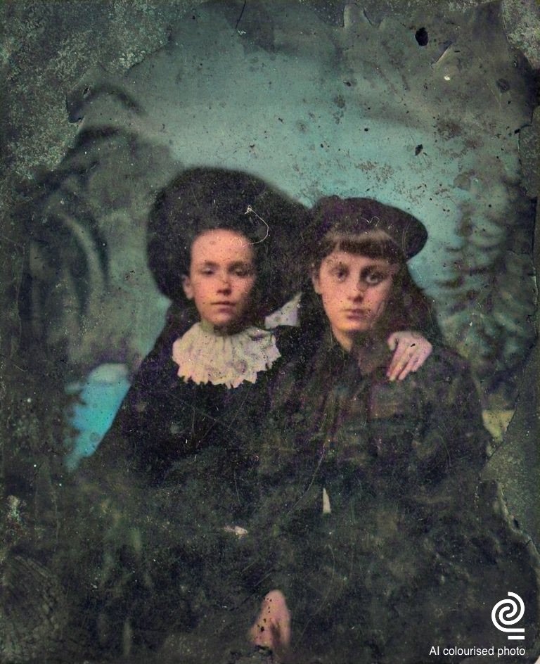 The first thing that I noticed about this image wasn’t the rather vibrant skin tones (which I could tone down a little), but rather the background. I just hadn’t noticed that my several-greats grandfather and his sister are sitting in front of a painted backdrop with trees and what could well be a lake. The machine learning algorithm interpreted this, colouring in the ‘water’ in a vibrant blue. I hadn’t noticed it before. I experienced an emotional connection to my distant ancestors, looking out of the photo at me 160 or so years later. The colour made them seem more ‘real’. It’s hard to explain, but when you have a connection with a colourised subject, something just happens. There is certainly a strengthening of any connection that already exists.