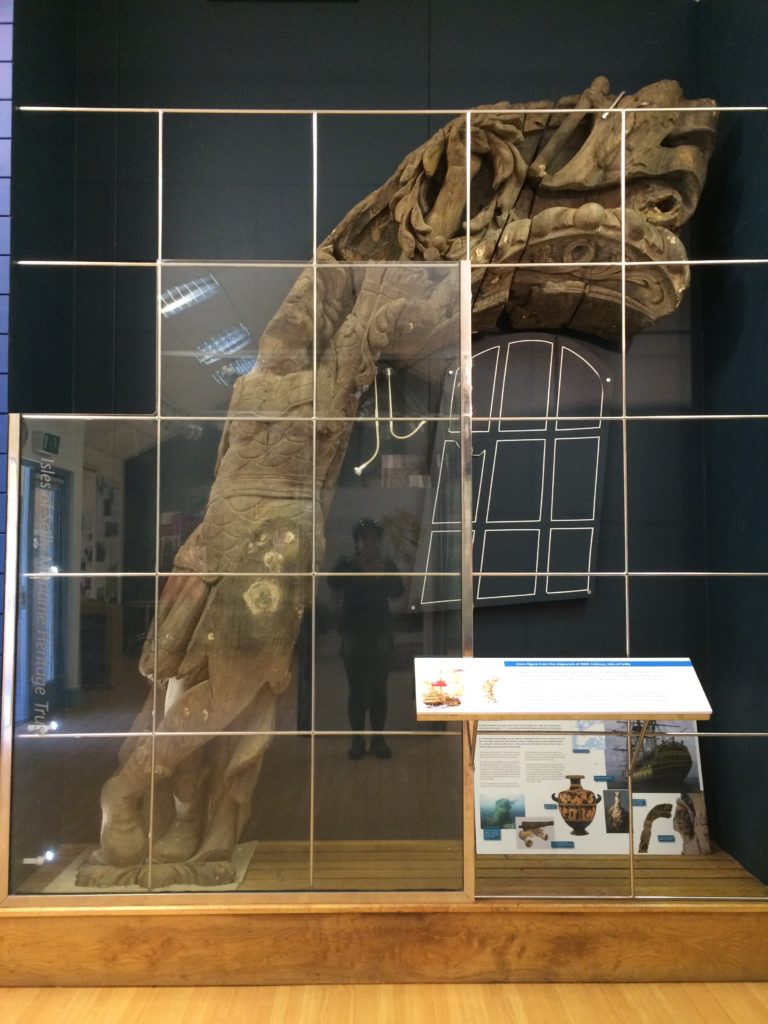 In early 2022 we were asked by Cornwall and Isles of Scilly Maritime Archaeology Society (CISMAS) if we could help them with an intriguing project. In the small museum on the island of Tresco, Isles of Scilly, is a large 3.5m high wooden carving from the stern (back) of HMS Colossus which was wrecked in 1798.