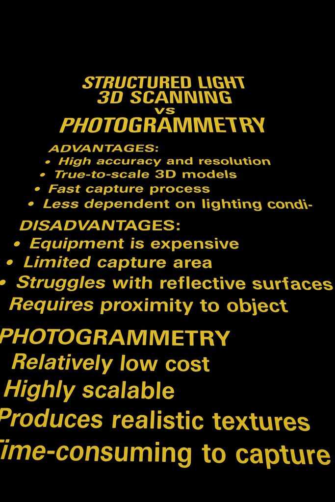 Structured light scanners are generally terrible for capturing colour. They always have been and still are. Examples of colour textures that I have seen from the latest summer 2025 scanners, lauded as ‘incredible true-to-life colour’ – aren’t. They’re muted, mushy, and only indicative at best. Photogrammetry will beat SLS for colour every time for years to come, I suspect. If colour doesn’t matter, which it often doesn’t when undertaking analytical scanning (to enhance surface features, take cross-sections etc), then SLS can be a very quick way to 3D scan within a set of defined tolerances.