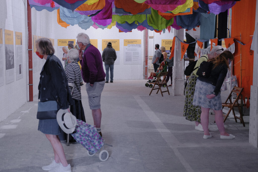 At the same time, the exhibition needed to feel alive and recognisably Golowan. It could not simply be a sequence of panels. It had to carry the colour, movement and character of the festival into an indoor space.