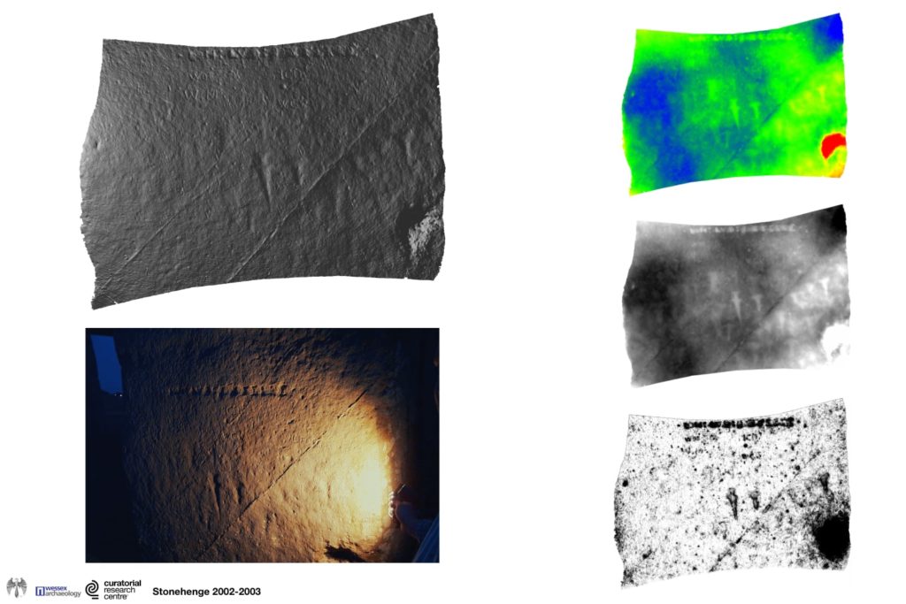 Alistair Carty from Archaeoptics and Tom Goskar, then at Wessex Archaeology, experimented with novel ways of visualising the 3D surfaces. In 2003 the team published the discovery of ‘new’ carvings, previously unrecorded right next to the a group of well-known ones.